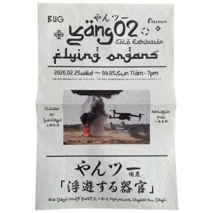 BUG, operated by Recruit Holdings Co., Ltd. is pleased to present a solo exhibition by yang02 “Flying Organs” starting Wednesday, February 25, 2026. yang02 has previously presented works utilizing technologies like AI and Segways, casting a critical gaze toward progressivism and capitalism. The artist also attempts to re-examine the physicality and subjectivity of humans in relation to these technologies.