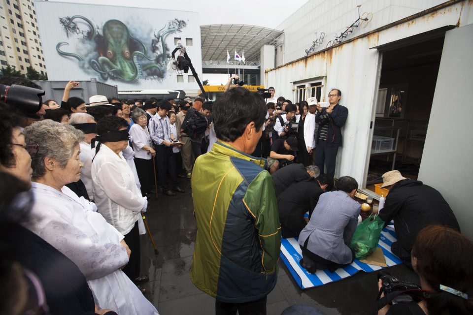 ML: I think it is even more so under the current Abe administration. We all know who Abe’s grandfather is. Nobusuke Kishi was jailed as a suspected war criminal. It seems Abe wants to revert back to the imperial glory of his grandfather’s era. Today’s Japan was built on the absolution and support of the US government in exchange for collaborating on the anti-communist front after the Korean War. It is time that Japan stops blaming the victim and faces the past. Regression happens when history is distorted and memory selectively edited. And what could be worse regression than when there is only hate left to be passed on to future generations? In this context, Japan’s Kishi, the so-called “ghoul of Showa” (Showa no yokai) whose powerful influence lasted long after his death, and Korea’s Park Chung-hee are eerily like twins. The supporters of Park Chung-hee’s daughter and former Korean president Park Geun-hye in Korea and the supporters of Abe in Japan are destroying our hopes for peace.