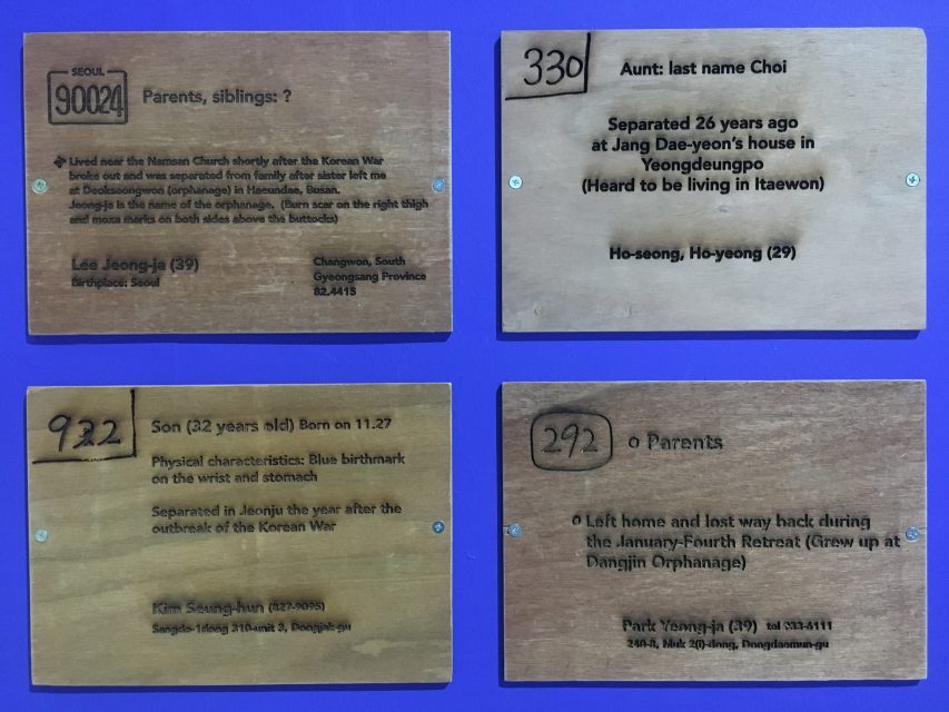 ML: For people to confess that they came from North Korea after the war or that they still had family there was like coming out with a secret that made them vulnerable to discrimination and exclusion, simply because of guilt by association. Many North Koreans who moved south after the war hid their personal history or became far-right conservative leaders of the anti-communism movement. This is why some placards show pictures of the Korean taegeuk flag, or unnecessary slogans like “Thank you, KBS” or “Bring down communism.” But in reality, many of the missing family members turned out to be living in South Korea, so the moment of reunion probably felt like a huge release of pent-up anxiety for them.