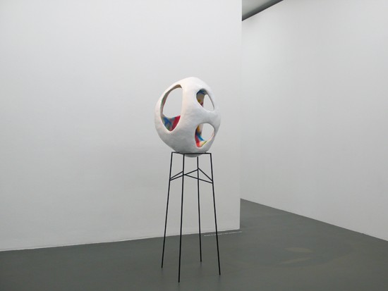 Eva Rothschild – Installation view of Yr Inner Child (2009), fabric, wire, jesmonite, fiberglass, hardboard, paint, powder-coated steel, 223 x 61 x 58cm. Collection Ken and Helen Rowe, London.ART iT: You include artists from a broad geographic spread, such as Teppei Kaneuji and Koki Tanaka from Japan. I’m interested in how the collapse of geographic boundaries in recent years has brought together so many different voices in a shared but undefined space, and how curators respond to that. When you travel overseas, how do you balance context and intuition in evaluating works?