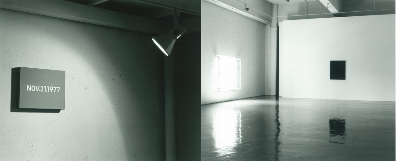 (左)「河原温 Today」 展示風景 1986年、雅陶堂ギャラリー(現 YOKOTA TOKYO) ©︎ One Million Years Foundation 撮影:Seiichiro Iwakami