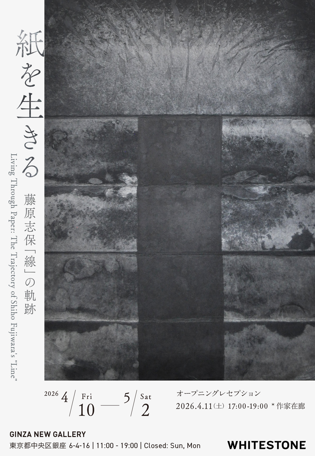 この度、ホワイトストーンギャラリー銀座新館では藤原志保による個展『紙を生きる-藤原志保「線」の軌跡』を開催いたします。兵庫県丹波篠山にアトリエを構え、一貫して墨と和紙による抽象表現を志向してきた藤原の、30年ぶりの東京での個展となります。凛冽なる意志が佇む、雅趣あふれる作品世界をご堪能ください。