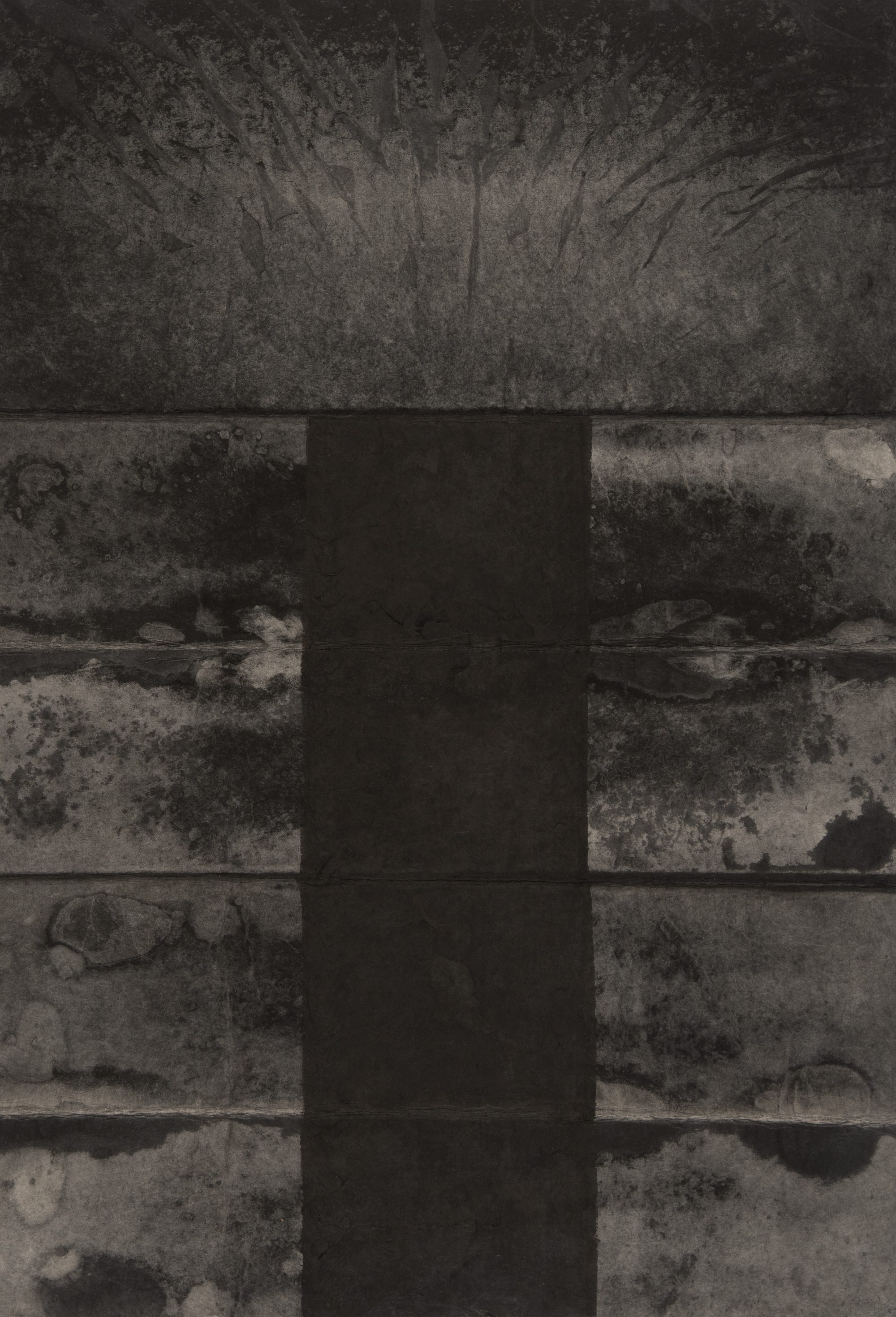 日本画家であった祖父の私への遺言は「人に媚びない、自分の表現したい作品を描きたいなら、自立できる仕事を持て」というものでした。さまざまな死生観に向き合わざるをえない看護師という職業を選んだのも、表現することと生きることを直結させたいという意識が働いたのでしょう。神戸市立中央病院を皮切りに65歳で定年を迎えるまで、日々患者さんに触れあうこと、墨と和紙のモノトーンの世界に対峙することは、どちらも私の日常を不可分に構成する現実であり、修行の日々であったともいえます。私の血となり肉となった経験の在りようや内観の変化は、新たなカタチを得、墨と和紙を媒介とする作品のなかで息づいているのではないでしょうか。