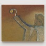 平松典己は、制作の起点において特定のモチーフを設定することなく、一見無関係にも見える抽象的な背景や、即興的な筆致と色彩の重なりが生む混沌としたコンポジションの中から、偶然性と必然性の合流点を見出します。個人的な記憶や体験、想像、美術史に連なる引用等を自由に横断しながら、人物などの具体的なモチーフを事後的に導き出していく独自のプロセスが、その大きな特徴です。