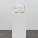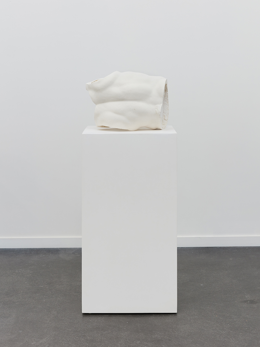 マルジェラによる実践の根底にあるのは、人間の身体への継続的な探究です。そこで身体は、視覚的体制と触覚的体制というふたつの競合的な枠組みが収斂する、歴史的な負荷を帯びた場として位置付けられます。彼の作品は、顕在化と秘匿の狭間、露見と保護の狭間の緊張関係——古典彫刻から現代美術に至るまで身体表象を形成してきた力学——を再活性化させるものです。《Tops & Bottoms》と題された連作では、ルーヴル美術館に収蔵されている大理石彫刻に基づいて、規範的な裸像が現代の下着の形状で切り出されています。下着の本来の機能を反転させ、その内部にあるものを露見させることで、これらの彫刻は魅惑と疎外の狭間に緊張を生み出します。カーペットやシリコンといった素材が巧みに用いられることで、本展の各作品は特徴的なテクスチャーを帯びており、それが接触の感覚をより活性化させます。この枠組みにおいて、フェティシズムはコンセプチュアルな戦略として機能しています。そこでは、身体の断片や物質的な痕跡は欲望や記憶の場となっており、それによって私たちの注意の対象は、生きた身体から物質の残余へと移行するのです。