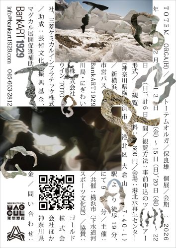 保良雄 個展「TOTEM ORGA(H)/トーテムオルガ」 2026年2⽉13⽇(金)-2⽉15⽇(日)、20日(金)-22日(日)計6日間 港北水再生センター(神奈川県横浜市港北区大倉山7-40-1) 観覧料:600円(事前申込のツアー形式) 主催:BankARTView More >