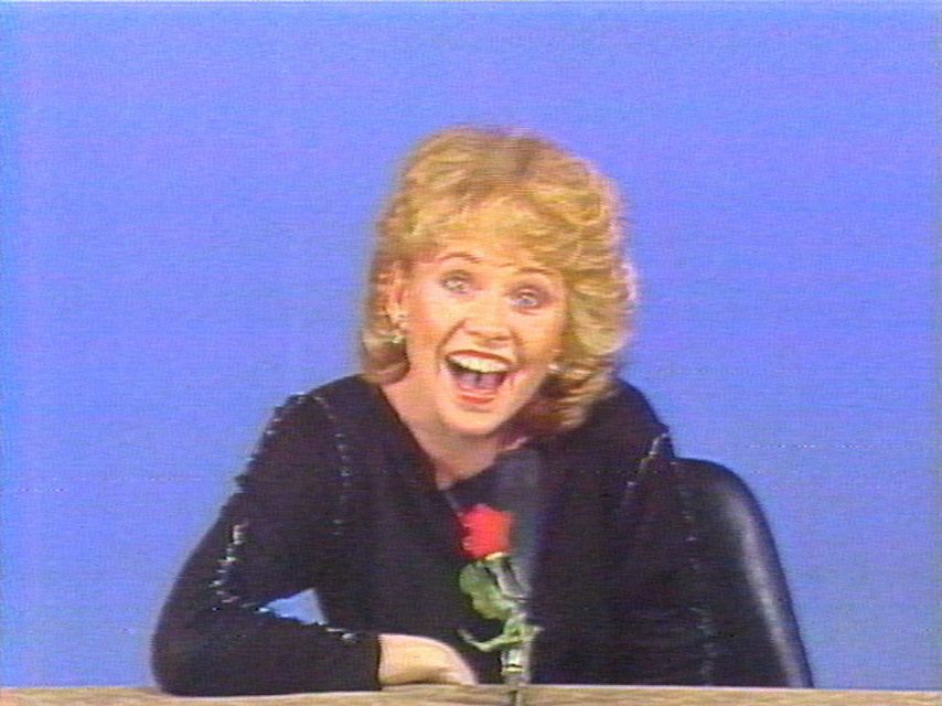 Dara Birnbaum, Kiss the Girls: Make Them Cry (1979) (Video still) Two-channel video installation (color, stereo sound, 6:50 min.), two video shipping crates, Courtesy of the artist and Marian Goodman Gallery, Copyright: Dara Birnbaum