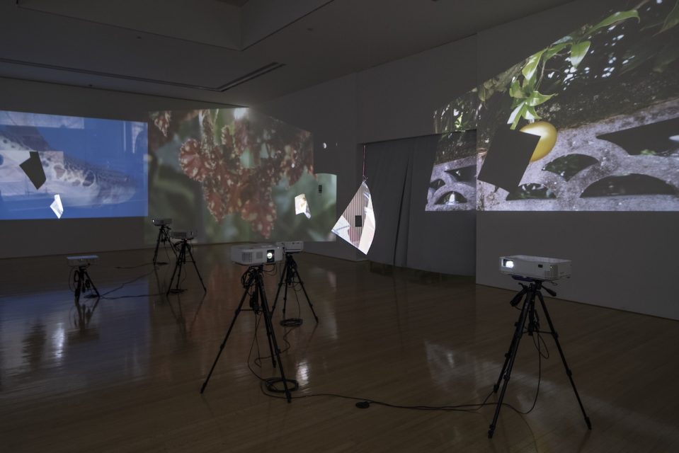 倉知朋之介《ムシ図鑑》2022年|インスタレーション(サイズ可変)|映像(11:21)、ダンボール、スクリーン