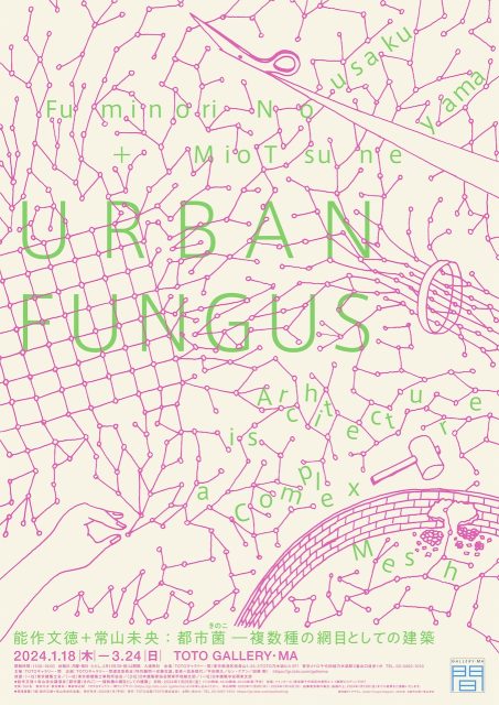 TOTOギャラリー・間では、建築設計や論考執筆に加え、国内外の大学を拠点に、建築と都市と生態系の関係性リサーチを続ける能作文徳と常山未央の個展「都市菌(としきのこ)――複数種の網目としての建築」を開催する。