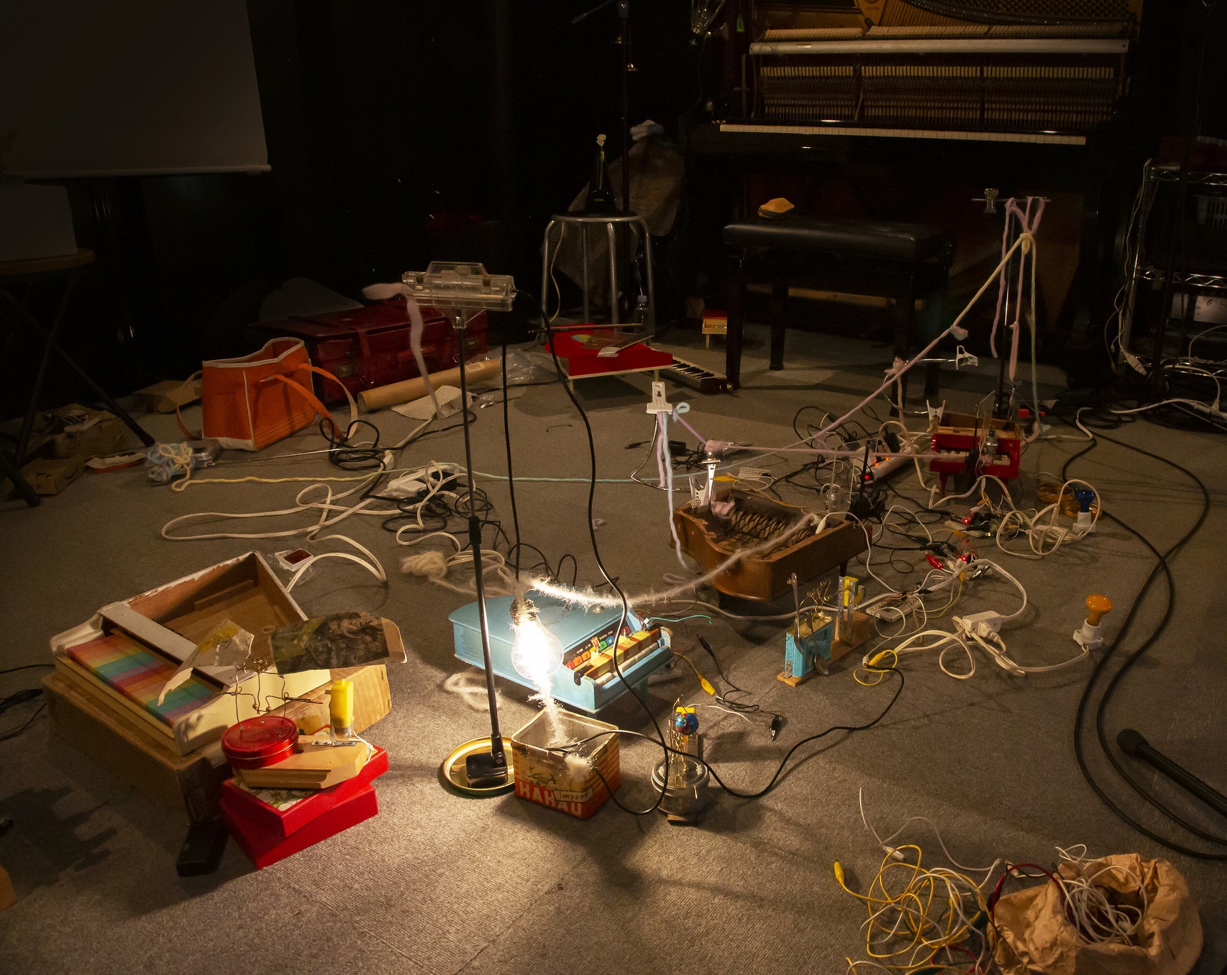 すずえり(鈴木英倫子)(神奈川県生まれ)は、ピアノや自作の電子回路などを連動させた装置を用いてインスタレーションや即興演奏を手がけ、音やそれを媒介する通信技術の表象に物語性を見出そうとしてきた。武蔵野美術大学造形学部油絵学科を卒業後、2007年に岐阜県立国際情報科学芸術アカデミー[IAMAS]を卒業。 現在は東京大学大学院情報学環・学際情報学府先端表現情報学コースに在籍している。近年の主な展覧会に「OPENSITE 8 移動について」(トーキョーアーツアンドスペース本郷、2024)、「My Scenery」(Wall alternative、東京、2024)、「どうぐをプレイする Tools for Play」(NTT インターコミュニケーション・センター [ICC]、東京、2022)など。主なパフォーマンスや活動に「mœrs festival 2024」(メールス、ドイツ、2024)、「The Process」(Harvestworks、ニューヨーク、2023)などがある。本展では、Wi-FiやGPSなど現代に欠かせない通信技術の礎を開発した、発明家でハリウッド女優のヘディ・ラマーに焦点を当て、ピアノや電球を通信機器と接続したインスタレーションなどを展開し、通信と社会の関わりについて考える。