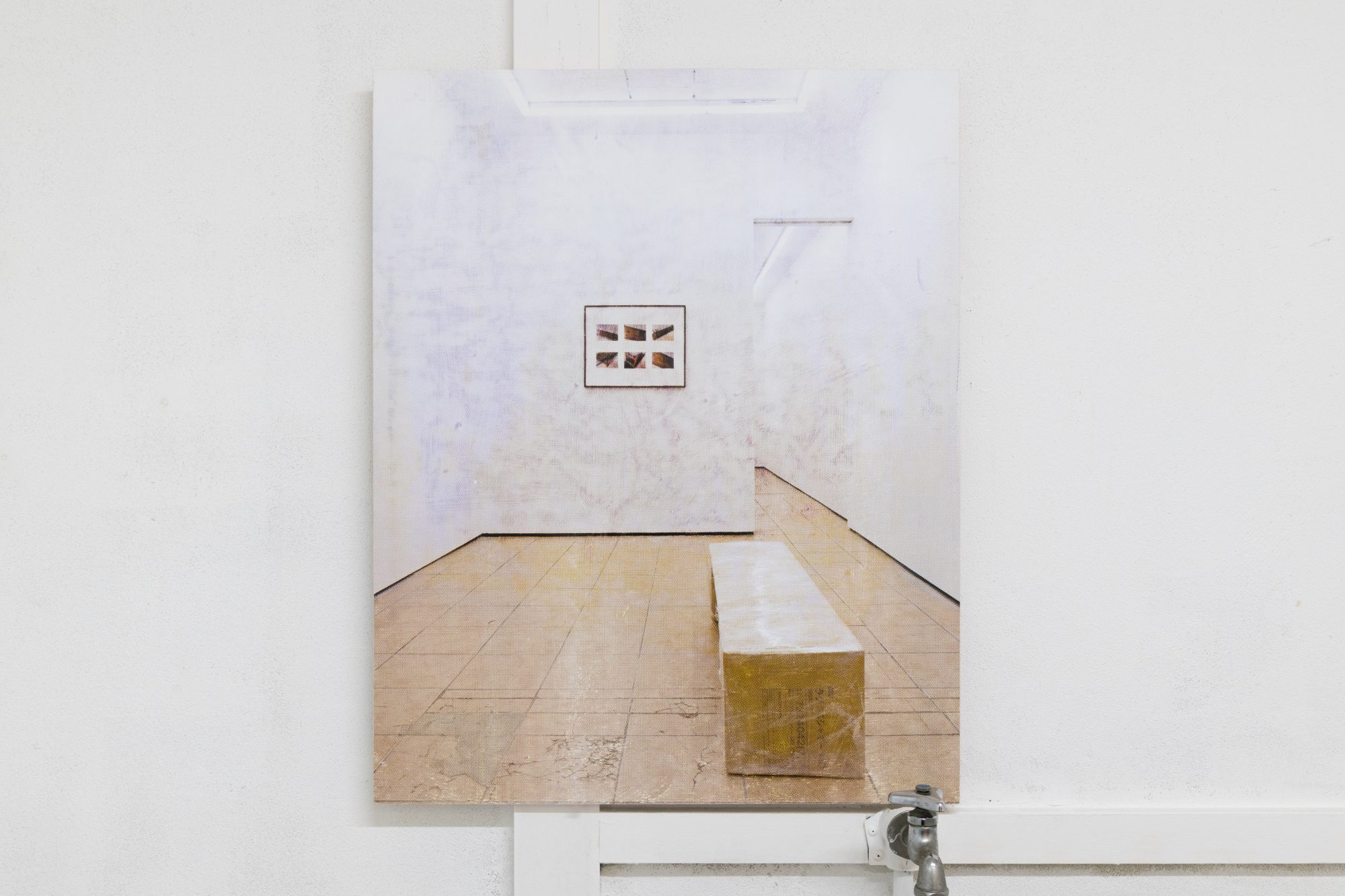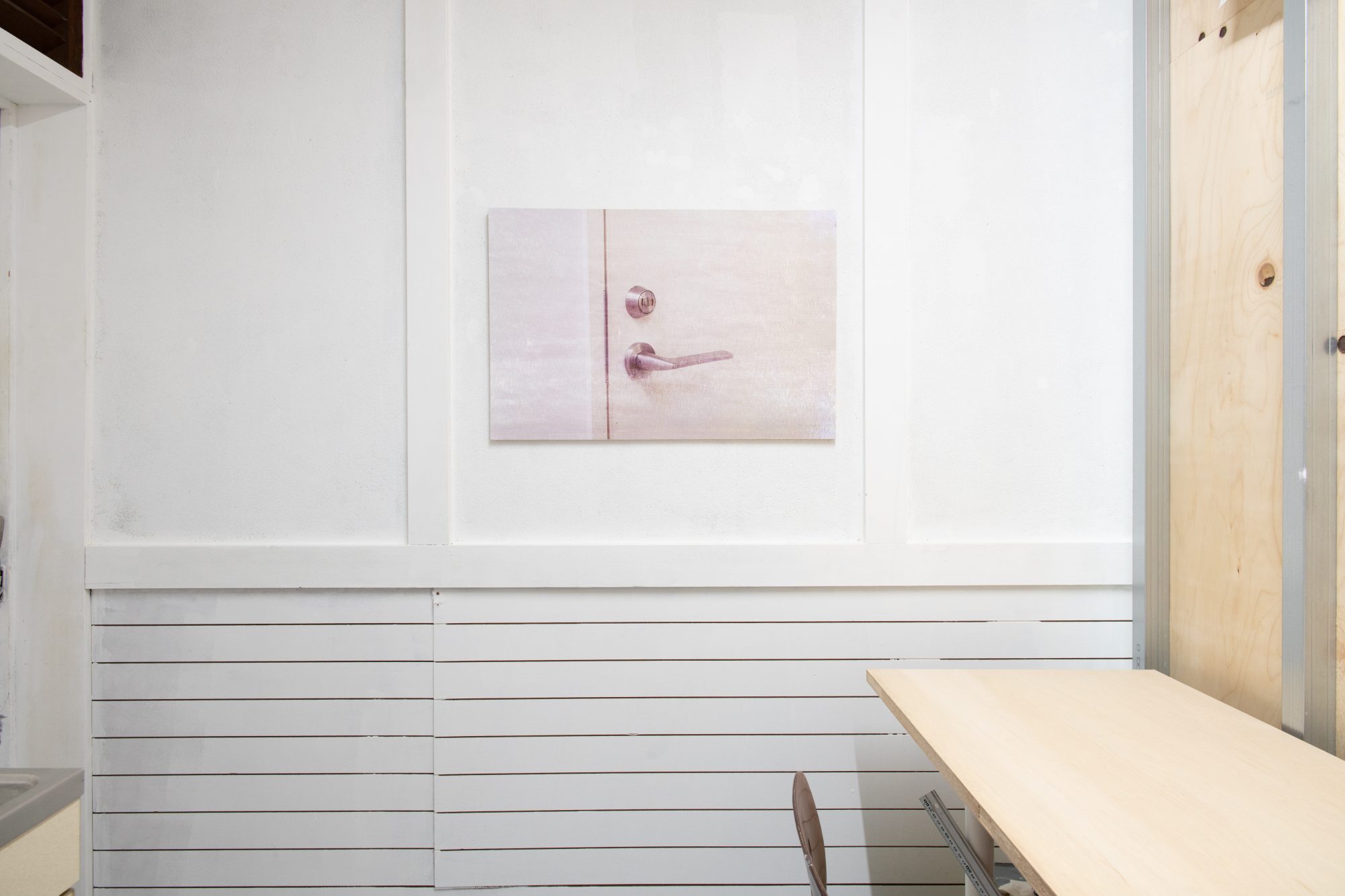 高見澤は、これまで美術を支える制度や慣習、展覧会のインフラといった下部構造に眼差しを向けてきた。本展では、インスタレーションビューや作品撮影が記録を超えてアーカイブや市場の権力装置となり、作品の価値を左右する現状に着目する。ニューヨークでのふたり展で他作家によって撮影されたインスタレーション写真や、友人の来訪に着想を得て制作された鍵のインジケーターを赤く塗った作品を撮影した写真などをもとに、シルクスクリーンで絵画化した5作品を展示。デジタル化され他者の名と並置される展示写真を、絵画の支持体へと移し替えることで、複製技術や他者の介入がもたらす制度の不確かさを浮かび上がらせ、作品と制度の関係を問い直す。