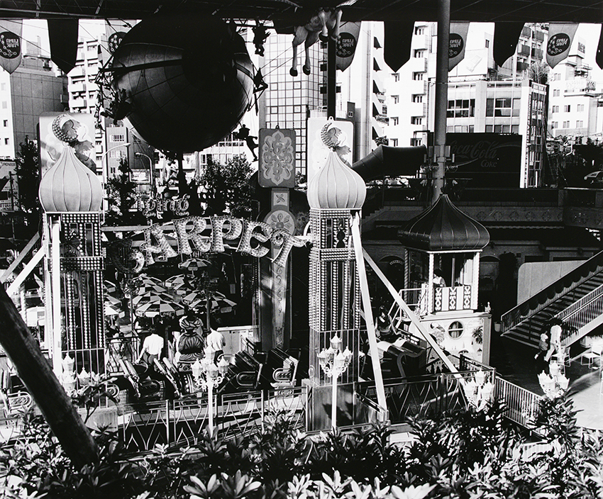 金村修(1964年東京都生まれ)は、初期より電線や看板、ネオンサインがひしめき合う都市の風景をモノクロで撮影してきた。90年代より第3回ロッテルダム写真ビエンナーレ(1992)、「ニュー・フォトグラフィー12」(ニューヨーク近代美術館、1996)など、国外の展覧会に参加。2000年には個展「BLACK PARACHUTE EARS 1991-1999」(川崎市市民ミュージアム)および9年間にわたる写真活動全般が評価されて第19回土門拳賞を受賞。90年代より現在に至るまで精力的に作品を発表している。東京都写真美術館では第3期重点収集作家に選ばれている。