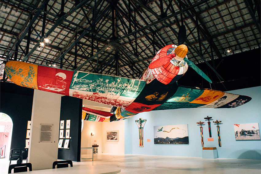 「記憶」の集積と「技術」の再定義を軸に、歴史や文化との新たな関わり方を提示するこれらの作品群の中で、沖潤子による繊細な刺繍作品は、手仕事や布に宿る家族の記憶を辿りながら、個人と社会、過去と現在の関係を結び直す。桑田卓郎は、日本の陶芸の技術と歴史を大胆に引用しつつ、鮮やかな色彩や奇抜なフォルムによって時代を超える造形美を生み出し、その作品に備わる工芸と現代美術というカテゴリーに対する批評性によって「日本的なるもの」への認識を更新する。日本軍のジャワ侵攻で使用され、その後インドネシア軍が独立戦争のために再利用した戦闘機を、インドネシアの凧職人たちとともに凧として蘇らせる北澤潤のプロジェクトは、歴史の痕跡をダイナミックに描き出しつつ、両国をつなぐことの葛藤と可能性を浮かび上がらせる。