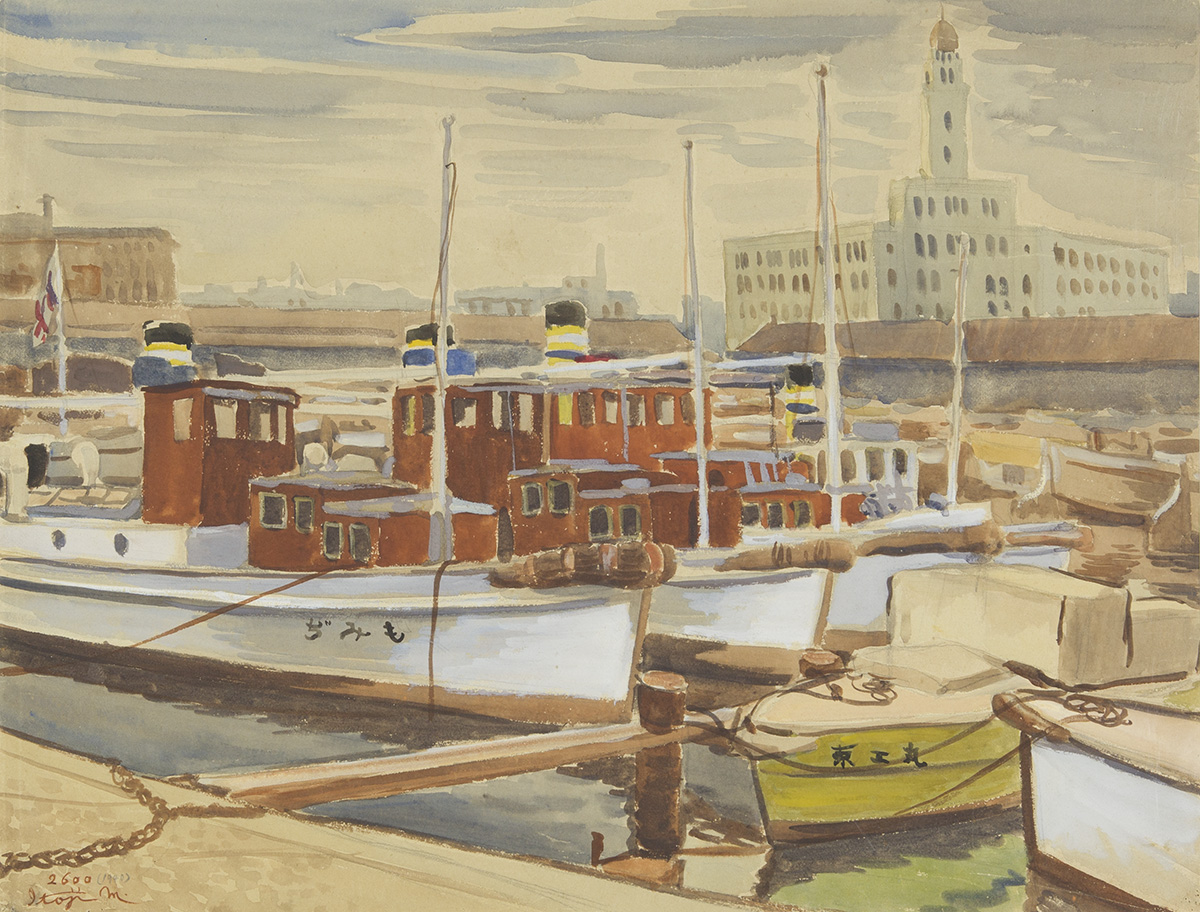 三橋兄弟治《港》1940年 水彩、紙 57.3×75.0cm 横浜市民ギャラリー所蔵