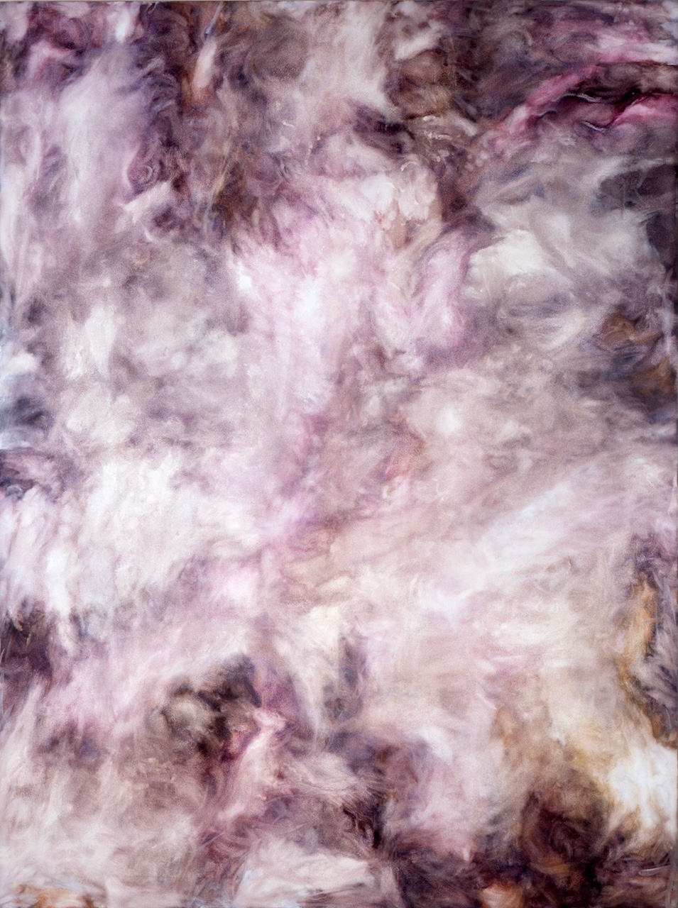 松本陽子(1936年東京生まれ)は、東京藝術大学美術学部絵画科を1960年に卒業し、1967年から約1年間にわたりアメリカ合衆国に滞在。滞在中に出合ったアクリル絵具と綿のローカンヴァス(下地塗りの施されていないカンヴァス)による手法を独自に探究し、鮮やかで軽やかなさまざまな色が重なって、水蒸気を得てもくもくと成長する雲のような、動きと光にあふれた空間を持つ絵画、とりわけ代名詞となったピンクを主調とした絵画群を生み出した。2000年代に入り、油彩画に本格的に取り組み、緑や黒、青などを用いて豊穣な絵を描き出し、2026年5月に90歳を迎える現在も制作活動を継続している。1991年に国立国際美術館にて個展「国際交流展 松本陽子」を開催。2005年に神奈川県立近代美術館 鎌倉にて西村盛雄との二人展、2009年に国立新美術館にて野口里佳との二人展を開催。近年も「モネ それからの100年」(横浜美術館、2018/名古屋市美術館、2018)、「桃源郷通行許可証」(埼玉県立近代美術館、2022)などに出品。