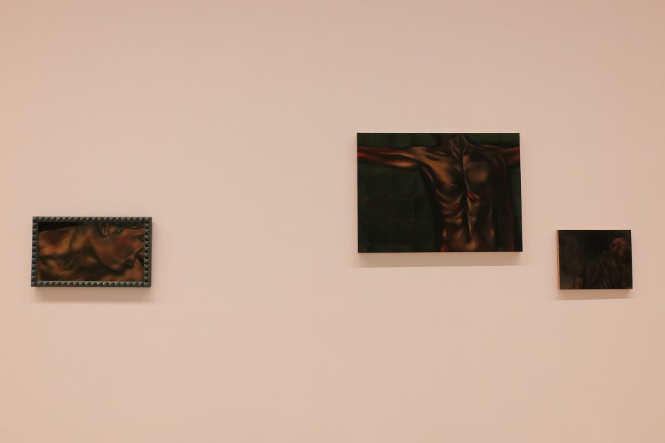 (左から)ラファエラ・クリスピーノ《We don’t want other worlds, we want mirrors (われわれは他の世界なんて必要としていない。われわれに必要なのは、鏡なんだ)》2013年、オズギュル・カー《枝を持つ死人(『夜明け』より)》2023年