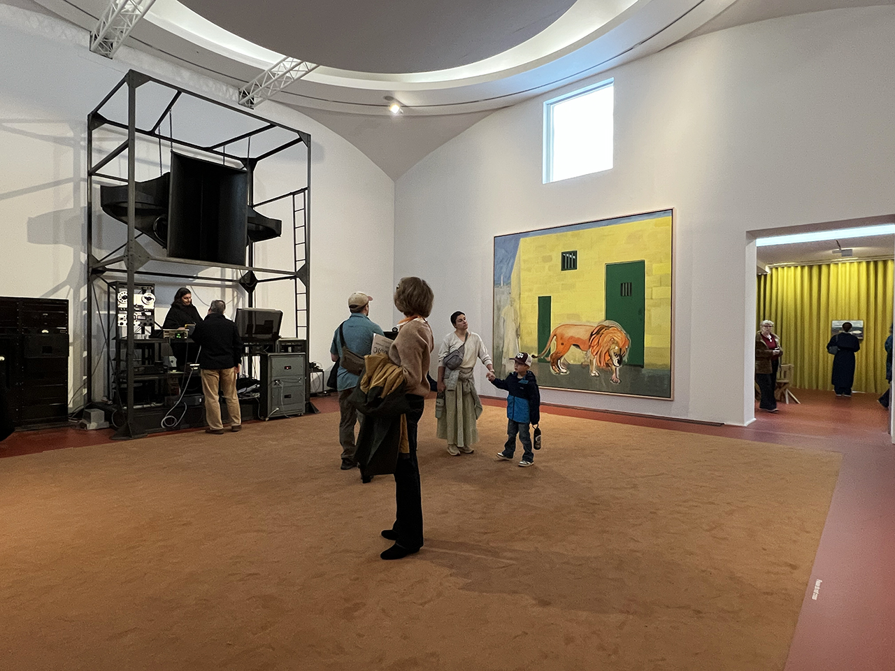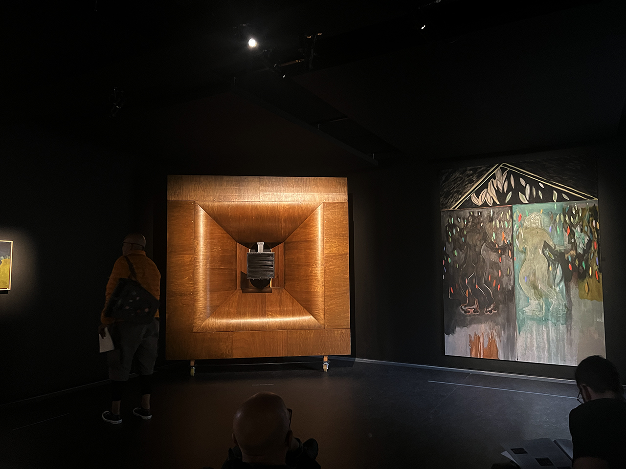 ウェスタン・エレクトリック/ベル研究所・スピーカー(1920-1930年代製)、ピーター・ドイグ《Rain in the Port of Spain (White Oak)》2015年