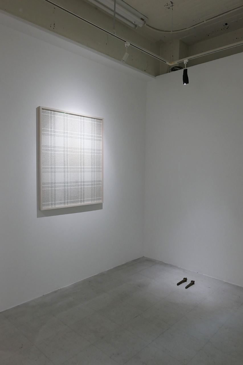 笠原恵実子《Plaids- brown-#5》2013–2014年、《Screw Spike for DR》1960年代