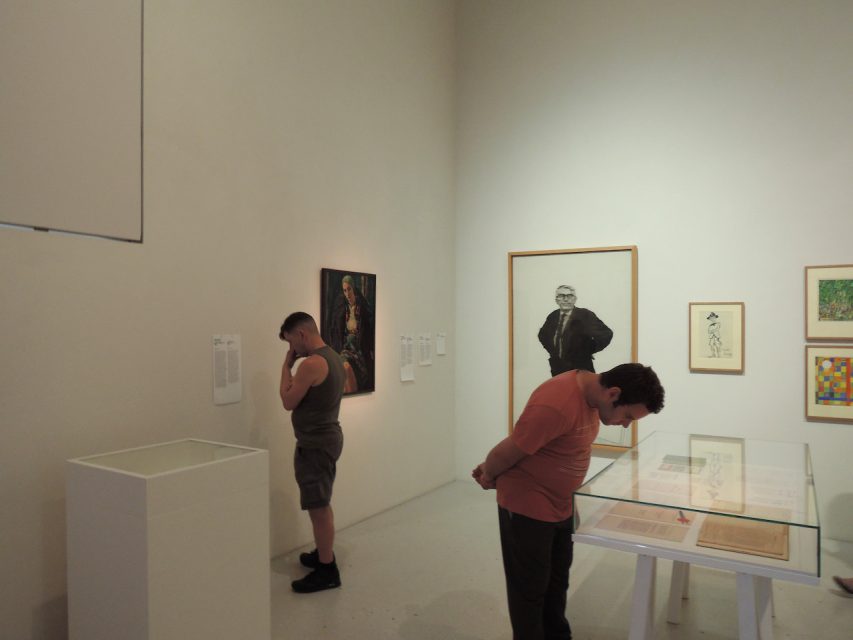 ドクメンタ14の際のノイエ・ガレリー。奥に、ゲルハルト・リヒターの描いたアーノルド・ボーデの姿がある。