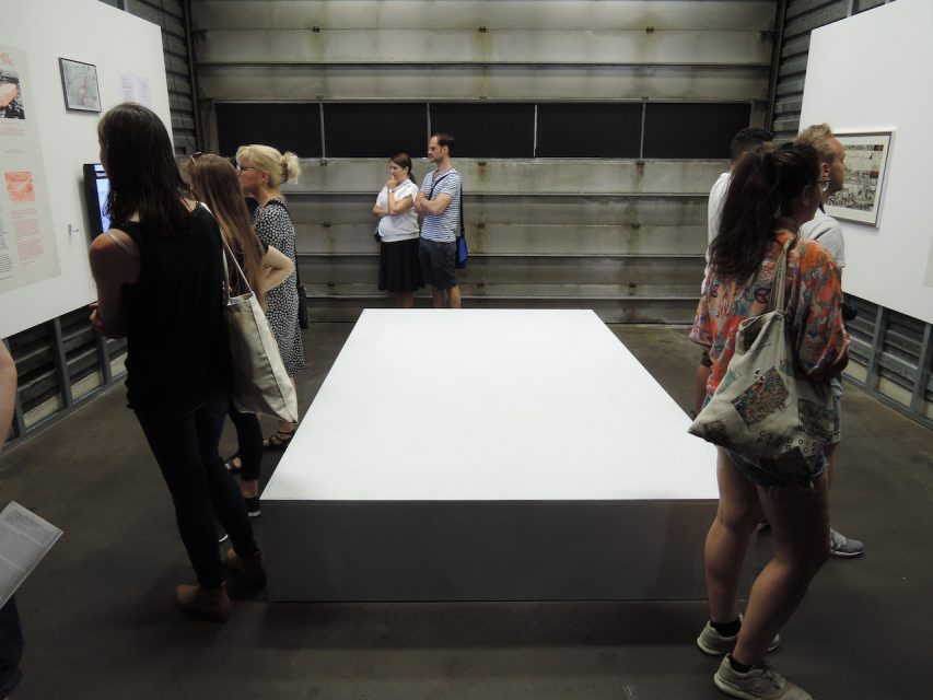 ドクメンタの初期のナチスとの関わり、つまりアーノルド・ボーデ[36] と共に創設者とされる、キュレーターでもあったヴェルナー・ハフトマン[37] が、ナチ党員でありSA(突撃隊)でもあったという経歴、同じく共同創設者のクルト・マルティン[38] が、美術館長としてナチスの美術品収奪に関わっていたということ、運営組織の1/3を元党員らが占めていたこと、第3回目までユダヤ人作家が選考されなかったことなど、これらに自省的に研究・分析が行われる必要があるのは言うまでもない。けれども、だからと言って、ここまで継続してきたドクメンタそのものを問題視するというのは性急すぎる。確かに、そうした事実の発覚が、それほど回数を重ねていない時期のことであれば、継続自体を検討することもできたかもしれない。しかし、不幸なことにナチスの影に気づくことなく、時間は積み重ねられてきてしまったのだ。しかも、そうした時間のなかで、人種差別、反ユダヤ主義、反移民を告発するような展示も行われてきた。かつて、カッセルの市庁舎前に、1908年に地元のユダヤ人実業家、ジグムント・アシュロット[39] によって寄贈されたモニュメントがあった。ナチス時代に破壊され、「ユダヤ人の泉」、「アシュロットの墓」などの蔑称で揶揄されていたが、1986年にモニュメント再興のコンペが行われ、ホルスト・ホーハイゼル[40] のプランが採用されている。ホーハイゼルは、約12mもの高さのかつてのモニュメントをそっくりそのまま地下に向けて逆立ちさせるという大胆な作品を完成させる。2012年のキャロライン・クリストフ=バカルギエフ[41] のdCUMENTA(13)では、その作品を出展作品としてカウントするとともに、ディレクター自ら、アーティストと共に地下に潜り、パフォーマンスとして清掃作業を行っている。ホーハイゼルには、もうひとつ、カッセル中央駅に常設されている作品がある。学生たちとのワークショプを実施し、かつてカッセルの住民だったユダヤ人の名簿に基づき、個々の人物を調査し、その結果を一人ずつ一枚の紙にまとめ、その紙でひとつの石を包んで台車に載せ、《考える石のアーカイヴ》と名づけた作品を制作したのだ。それは、直接ドクメンタに出展されたものではないが、dCUMENTA(13)の際、ジャネット・カーディフとジョージ・ビュレス・ミラー[42] のiPadで駅舎をヴァーチャル・ツアーする作品《Alter Bahnhof(「年老いた駅」)》のなかで紹介されている。カッセル中央駅には、documenta Xのときのロイス・ヴァインベルガー[43] のインスタレーションも残っている。かつてユダヤ人を乗せて絶望の旅に向かった線路跡が、「植物の彼方にあるものは植物と一体化している」として、ユーデンフライ(judenfrei)、 ユダヤ人のいない状態をいち早く達成したという、誇ることのできない歴史を、繰り返しカッセルの人々に語りかけてくる。ヴァインベルガーの作品は、documenta 14でも反芻されていたが、そもそも、documenta Xのときのプラットフォームは、中央駅に行けば、あのときと同じような空隙をポッカリと空けて待っていてくれる。また中央駅では、スーザン・フィリップス[44] の作品も印象深かった。フィリップスは、テレージエンシュタット強制収容所で殺された作曲家、パヴェル・ハース[45] の曲からチェロとヴィオラのパートだけを抽出して再構成し、中央駅のプラットフォーム全体に配置したスピーカーから、特定の時間にその曲を流した。曲自体は、収容所で演奏した際、指揮をしたカレル・アンチェル[46] の手で再構成されているが、もともとの楽譜の大半は失われているという。アンチェルは、妻と子を強制収容所で失っているが、アウシュヴィッツに移送されたもののの生き延びている。ハースの楽曲を演奏する収容者のオーケストラと、指揮をするアンチェルの姿は、1944年に完成したナチスのプロパガンダ映画『テレージエンシュタット』で見ることができる。[47] 中央駅では、クレメンス・フォン・ヴェーデマイヤー[48] の《MUSTER(Rushes)》も上映されていた。長尺の作品だが、約30分の物語が3つ組み合わされたかたちで、2本までは観れるが3本同時に観ることはできないようにインスタレーションされていた。舞台は、カッセルから北に10kmほど離れたブライテナウ修道院。12世紀、ベネディクト会修道院として開設された修道院は、第二次世界大戦下、強制収容所に姿を変え、戦後は、女子更生施設、精神病院となり、現在は記念館としてdCUMENTA(13)の展示会場にもなっている。ヴェーデマイヤーの作品は、3人の少女が、3つの時代に役割を変えて介入するというもので、アメリカ軍によって解放された直後の強制収容所、更生施設を舞台にした映画の撮影、そして現在の記念館に学校の研修で訪れるという、3つのシチュエーションで構成されている。戦時下のシーンは、当然、カソリックとナチスの親和性を暗示し、また、更生施設や精神病院などの歴史は、優生政策、T4作戦や、ド