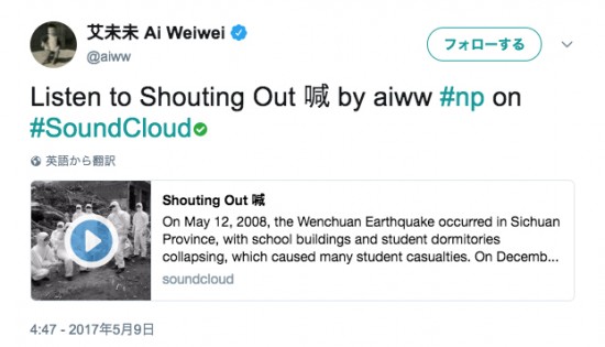 艾未未「Shouting Out 喊」、艾未未のツイッターアカウントより