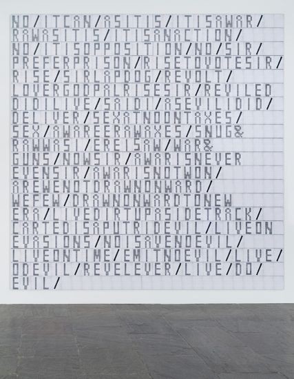 Strike/ (2008), 540 chromogenic prints, aluminum, wood, approx 381 x 394 cm今年のヴェネツィア・ビエンナーレの企画展に出品される「The electric comma (A language of exposures)」(2011)では文字の形や音を用いる予定で、4つの謎のオブジェクト(そのうちふたつはファウンドオブジェクトで、あとのふたつは制作したもの)とふたつの太陽(もしくは誤植か、または単なるアステリスクか?)と3つのバックスラッシュで構成される。