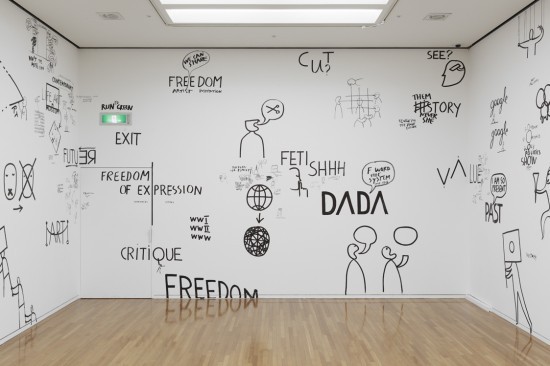 All images: Dan Perjovschi – Installation view at “MOT Annual 2016: Loose Lips Save Ships,” Museum of Contemporary Art Tokyo, 2016. Photo Shizune Shiigi, courtesy the Museum of Contemporary Art Tokyo.ART iT 『MOTアニュアル2016 キセイノセイキ』の根底にあるテーマのひとつ、制度批判に対する態度のことからはじめましょう。(同展を美術館と共同で企画した)アーティスツ・ギルドの結成には、日本の制度的枠組みにおける若いアーティストへの支援不足という側面がありました。ですから、彼らを美術館に持ってくることは、制度的枠組みに異論を唱える面白い方法だと思いました。これまでの経験上、美術館の役割をどのように捉えていますか。