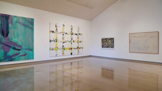 画面左より 中村一美「採桑老 V」(1998)、 サム・フランシス「無題」(1978)、ジャクソン・ポロック「ナンバー9」(1950)、サイ・トゥオンブリー「ディアナが通る」(1962/77)